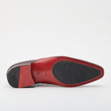 右踵の内側に配されたハートモチーフは、深みのあるボルドーカラーで仕上げられており、デザインの一部になっているオパンカソールと共に、エレガントで艶やかな表情をもたらしています