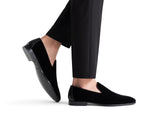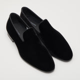 ラグジュアリーな雰囲気の漂うベルベットで仕立てた、エレガントなスリッポンシューズ